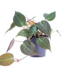 Het hartvormige blad van de Philodendron scandens 'Micans' heeft een mooie bladtekening en fraaie contrasterende kleuren.