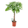 'Watercacao', 'geldboom' of Pachira. De watercacao komt uit Zuid-Amerika en groeit daar op land dat regelmatig overstroomt. De boom kan tot twintig meter hoog groeien. Zo groot wilt u ze niet in huis hebben, dus als sierplant wordt de plant verkocht in handzamer maten van 50 tot 200 cm. In Azië, waar de plant bekend staat als ‘Malabar kastanje’ wordt de boom ook wel ‘geldboom’ genoemd. In dat werelddeel staat de plant symbool voor zakelijk succes, dus daar komt u ze veel tegen in kantoren en bedrijven.