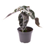 De pijlvormige bladeren van de Alocasia Curly Bambino golven en hebben grote witte nerven die een prachtig contrast vormen met de rest van het blad.